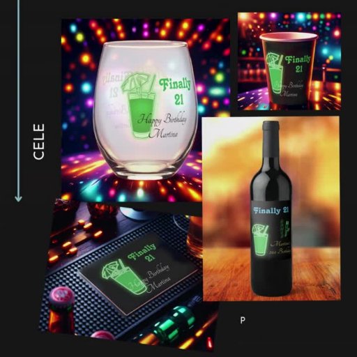Neon Drinken en dansende 21e verjaardag Kaart
