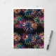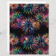 Een levendig en helder neon vuurwerk barstpatroon op een rijke zwarte achtergrond.