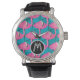 Neon Flamingos Twee | Uw Initiaal toevoegen Horloge