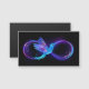 Paarse oneindigheid met een gloeiend symbool, met een lichte, blauwe kolibrie op zwarte achtergrond. Neon.