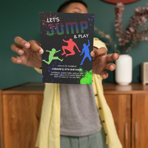 Neon Kinder Trampolinepark Verjaardagsfeestuitnodiging