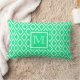 Neon mint groene diamant patroon monogram kussen