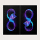 Neon oneindigheidssymbool met gloeiende kolibrie kaart