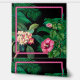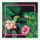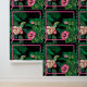 Een moderne maar retro thema neon roze tropische plantaardige stoffen op een zwarte achtergrond. Een mooi ontwerp ideaal voor de zomer. Perfect neon roze tropische planten ontwerp met palmbomen, roze Hibiscusbloemen en Plumerias Frangipanis. Zwarte, roze en groene kleuren domineren dit tropische roze neonontwerp.
