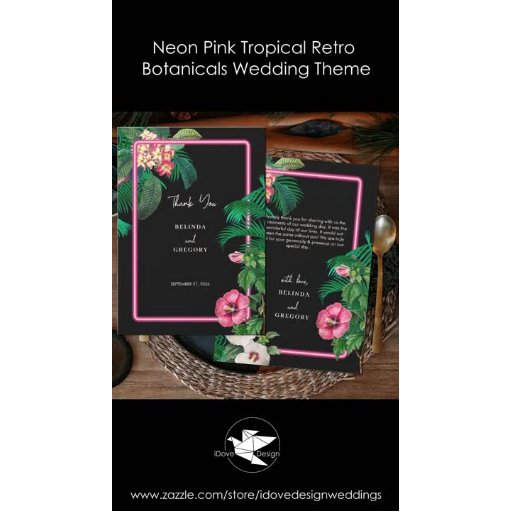 Neon Pink Tropical Retro Botanicals Wedding ThemeOntworpen door iDove Design