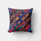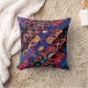 Een levendig, veelkleurig werpkussen met gouden en rode wervelende rimpelingen.