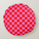Neon Roze en Rood Geruite Checkerboard Rond Kussen