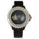 Grafische illustratie van kleurrijke zeilboten op de oceaangolven bij zonsopgang. Kies uw favoriete horlogestijl voor dit ontwerp. Geweldig cadeau idee voor liefhebbers van zeilen.