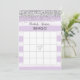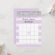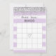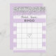 Bruidsdouche-bingokaart met nep-zilveren glinsterend ontwerp en lichtpaarse strepen waterverf achtergrond.