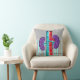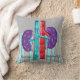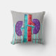 Nephroloog Nap Pillow in ruste met een gewrichtspijn van de nieren en een gestreepte blauwe en grijze achtergrond. Achterkant van kussen in coördinerende kleuren.