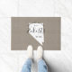 Moderne boerenboerengepersonaliseerde doormat met je familienaam in je staatskaart. Faux burlap canvastextuurachtergrond. Klik op Aanpassen om uw eigen tekst en afbeeldingen toe te voegen en een uniek ontwerp te creëer!