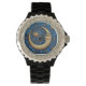 New age De horloge van een vrouw. levendig blauw en geel en een maan en sterren.