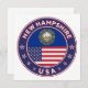 Badge van New Hampshire met vlag van New Hampshire en vlag van de VS kleuren, afgeronde vorm. Embleem van New Hampshire. Het zegel van New Hampshire. COLLECTIE van de Verenigde Staten.