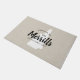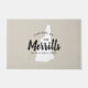 Moderne boerenboerengepersonaliseerde doormat met je familienaam in je staatskaart. Faux burlap canvastextuurachtergrond. Klik op Aanpassen om uw eigen tekst en afbeeldingen toe te voegen en een uniek ontwerp te creëer!