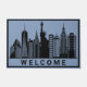Dit silhouet van de skyline van New York heeft een iconische architectuur en afbeeldingen uit Manhattan. Wijzig de welkomstsignage en achtergrondkleur in de aangepaste sectie.