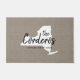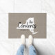 Moderne boerenboerengepersonaliseerde doormat met je familienaam in je staatskaart. Faux burlap canvastextuurachtergrond. Klik op Aanpassen om uw eigen tekst en afbeeldingen toe te voegen en een uniek ontwerp te creëer!