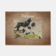 Newfoundlandhonden in burlap look background . De antiek afbeelding is bewerkt en toegepast op dit object door Alma Wad. Rustige deurmat voor een hondenliefhebber thuis. U kunt de tekst "Welkom" nu aanpassen.