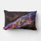 Verbluffend detail van een klein deel van de Veil Nebula. Dit deel van de buitenste schil van het beroemde supernovarest bevindt zich in een gebied dat bekend staat als NGC 6960, de Witch's Broom Nebula. Het puin is een van de bekendste supernova-overblijfselen, die zijn naam ontleent aan zijn delicate, gedrapeerde structuur. De gehele nevel is 110 lichtjaar breed en bedekt zes volle manen aan de hemel gezien vanaf de aarde, en bevindt zich ongeveer 2100 lichtjaar verderop in het sterrenbeeld Zwaan. Dit uitzicht is een mozaïek van zes Hubble-afbeeldingen van een klein gebied van ongeveer twee lichtjaar doorsnede, die slechts een klein deel van de uitgestrekte nevel beslaan. Deze close-up onthult slierten van gas, die alleen overblijven van wat ooit een ster was die 20 keer zwaarder was dan onze zon. De snel bewegende explosiegolf van de oude explosie ploegt in een muur van koel, dichter interstellair gas, dat licht uitzendt.