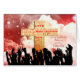 Een kerstkaart voor je nichtje en haar familie. Een heel andere kerstkaart. De heerlijke menigten zwaaien hun handen voor een gouden kruis. Het kruis is met kerstgroeten en zinnen in het rood. Op de achtergrond is er een rode hemel met ronddraaiende menigten en sterren. Stuur deze kerst een religieuze boodschap met een kaart die geluk uitstraalt.