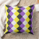 Gooi kussen met een naadloos patroon in de kleuren van de niet-binaire pride vlag; dambord patroon enby pride design; geel, wit, paarse en zwarte kleuren