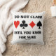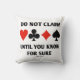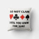 Laat uw woeste brug/dubbele brugzin zien van humor met deze gooikussens met de vier kaartpakken samen met het volgende advies van de geluidsbrug: "Niet claimen tot u het zeker weet (Kaart-sockets)".