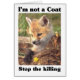 Een closeup van een rode vosskub met de woorden "Ik ben geen Coat - Stop de moord erop."