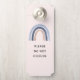 Een deurhanger die zegt: "Please Do Not Disturb" en op de achterkant staat "Please make up room" met een leuke en grillige regenboog. Blauwe en perzik waterverven.