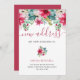 Deze mooie kerstvakantie- of wintervakantieaankondigingen bevatten trendy waterverf bouquets van rode en roze poinsettia bloemen, met feestelijke holly bessen en veel groene bladeren en bladeren op een witte achtergrond. Het handgeschreven manuscript voegt een extra moderne aanraking toe.