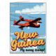 Nieuw-Guinea avontuurlijk poster. Een cartoon van het stijlprop vliegtuig past vakantiedruk aan.