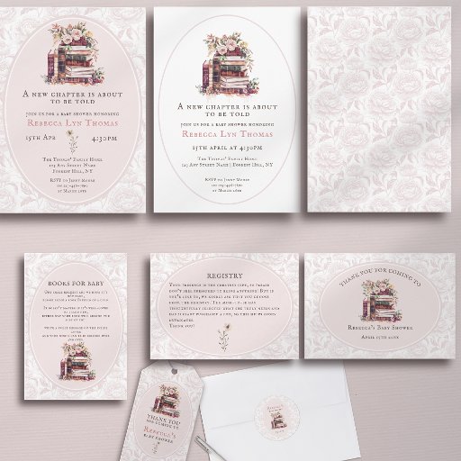 Nieuw hoofdstuk oude boeken baby shower bord blush blikjeskoeler