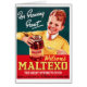 Herstelbaar en digitaal verbeterd adverteren poster dat een glimlachende jongen met een theelepel en een pot Maltexo met levertraan toont. Hij draagt een gele trui, een wit shirt en een rood stropdas. Onvolkomenheden verwijderd. Kleuren gecorrigeerd.