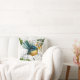 Een kussen met een inheemse Nieuw-Zeelandse vogel, de Fantail, erop samen met inheemse planten en bloemen.
