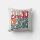 Vun en kleurrijk typografisch gooien pilow met een retro-voel kenmerkt de staat van New Mexico's bijnaam: Het land van bestemming getoond in een staatsvormig silhouet