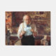 Dit ontwerp is voorzien van een schilderij van de Engelse kunstenaar James Campbell (1828-1893), die deel uitmaakte van een groep uit Liverpool die werd beïnvloed door de Pre-Raphaelite stijl. Het afbeelding is een ontroerend en intiem portret van familiale liefde en zorg, tegen de achtergrond van het leven in het midden van de 19e eeuw. Campbell, bekend om zijn genreschilderijen die vaak scènes uit het dagelijks leven afbeeldden, legt een moment van diepe emotionele resonantie vast in dit werk. De scène speelt zich af in een ambachtswerkplaats, waar een ouder man, de centrale figuur, wordt getoond met een letter in zijn handen. De titel van het schilderij, "News From My Lad", suggereert dat de brief afkomstig is van de zoon van het oude man, die waarschijnlijk ver van huis werkte of diende. De houding van het oude man is er een van vermoeidheid en leeftijd, met zijn rug enigszins gebogen terwijl hij de gekoesterde letter zorgvuldig vasthoudt en leest. Zijn verweerde gezicht, gekenmerkt door het verstrijken van de tijd, brengt een complexe mix van emoties over, zoals bezorgdheid, verlangen en misschien een sprankje hoop terwijl hij het nieuws van zijn zoon absorbeert. De manier waarop hij de brief in zijn handen wiegt, suggereert de betekenis ervan, en maakt duidelijk dat dit geen gewoon stuk correspondentie is, maar een dat een diepe persoonlijke betekenis heeft. De werkplaats van het oudere man is gevuld met de instrumenten van zijn vak, wat wijst op een leven doorgebracht in eerlijk, hard werken. Hij blijkt een slotenmaker te zijn; er hangen sleutels aan het plafond. Verschillende gereedschappen en werktuigen zijn verspreid over de kamer, en de details van het versleten metselwerk, houten oppervlakken, ruw uitgehouwen balken en de rommelige planken voegen authenticiteit toe aan de omgeving. De kamer weerspiegelt het karakter van het man en de wereld die hij bewoont, die er een is van eenvoud, ijver en rustige waardigheid. Licht speelt een subtiele maar belangrijke rol in het schilderij: natuurlijk licht komt de werkplaats binnen, mogelijk door een raam in de buurt, en werpt een zachte, warme gloed op de figuur van het man en de letter die hij vasthoudt. Dit licht belicht de gerichte expressie van het man terwijl hij de brief leest en de aandacht van de kijker vestigt op de kernelementen van het verhaal. Het originele kunstwerk werd geschilderd door James Campbell in 1859.