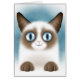 Glimlende siamese kat met blauwe achtergrond, met blauw oog.