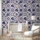 Nijlblauw linnen Mexicaanse Traditional Talavera T Behang