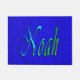 Op een blauw mozaïekpatroon is een kleurrijke Noach naam logo afgebeeld.