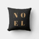 Eenvoudige, stijlvolle en gewaagde 'Noel' citeren kunstvakantiekussens in elegant goud op een luxe zwarte achtergrond in moderne, minimalistische typografische stijl. De groet kan gemakkelijk worden gepersonaliseerd voor een uniek en persoonlijk vakantieschema dat uit de menigte komt!
