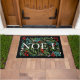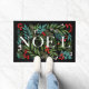 Het woord NOEL tussen winterblaadjes, rode en witte bessen is gedrukt op zwart op de deurmat, een geweldig accent van het vakantiehuis. OVEREENKOMENDE objecten in ons collectie.