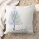 Noel pastel licht kerstboom, vanaf het midden. Origineel grafisch ontwerp met zachte bomen van blauwgroen, golvende en blauwe lichten, golden star bursts en roze boomtop. Knoop geschreven in platina cursieve tekst, die voortkomt uit de wortels van de boom.