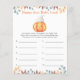 Een beetje pompoen is onderweg. Vier met deze baby cartoon pompoen thema voor baby shower feest! Waterverf schattige cartoon kawaii pompoen met herfstblad (pet) en herfstblad pet. Op de achterzijde van de kaart staan herfstbladeren.