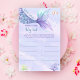"A Sweet Little Mermaid is on the way", "Under the Zee" thema meisje baby shower party. Waterverf pastel paarse en blauwe tinten, met speelse zeemeerminstaart, clownvis en koralen.