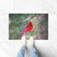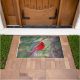 De rode kardinaal die in bossen doorkruist, geeft een welkome groet, op een stevige doormat.