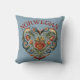 Deze kussen hebben een Noors Rosemaling-stijl Folk Art Heart-ontwerp. Boven het hart staat Noors in gekromde rode letters. De kleuren zijn rood, blauw, groen en gouden geel.