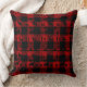 Een rode en zwarte buffelpleisterkussen met een Scandinavische zweetvormig patroon van zwarte winterdieren zoals rendieren, een poolvos en een polair beer familie, met sterren, pijnboomkegels en sneeuwvlokken.