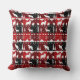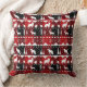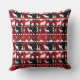 Een rode en zwarte buffelpleisterkussen met een noordse zweetvormig patroon van witte winterdieren zoals rendieren, een poolvos en een polair beer familie, met sterren, pijnboomkegels en sneeuwvlokken.