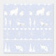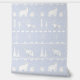 Een grillig IJslands Scandinavisch truitjespatroon in het wit met winterdieren zoals een poolvossenfamilie, de poolvos, rendieren, bosbomen, beren en vallende sneeuwdieren op een effen gekleurde achtergrond van een licht stoffige moerbeiblauwe paarse.