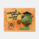 Funny Frankenstein Monster Cartoon Character met een houten paneel Comic met de tekst / Comic "Normal People Scare Me" en met Spider pet op het paneel. Originele Vector Grafische Kunst Copyright BluedarkArt.