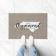 Moderne boerenboerengepersonaliseerde doormat met je familienaam in je staatskaart. Faux burlap canvastextuurachtergrond. Klik op Aanpassen om uw eigen tekst en afbeeldingen toe te voegen en een uniek ontwerp te creëer!