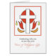 Een non neemt haar eerste geloften en hier heb je een mooie religieuze kaart voor je felicitaties. Een groot wit kruis voor een rode cirkel, omringd door rode, oranje en gele vlammen.